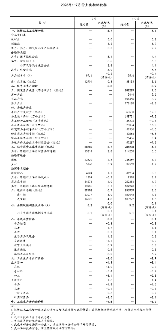 7月份,在以习近平同志为核心的党中央坚强领导下,各地区各部门认真贯彻落实党中央、国务院决策部署,坚持稳中求进工作总基调,完整准确全面贯彻新发展理念,加快构建新发展格局,加紧实施更加积极有为的宏观政策,纵深推进全国统一大市场建设,国民经济保持稳中有进发展态势,生产需求持续增长,就业物价总体稳定,新质生产力培育壮大,高质量发展取得新成效。