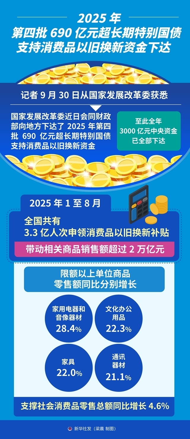 图表:2025年第四批690亿元超长期特别国债支持消费品以旧换新资金下达