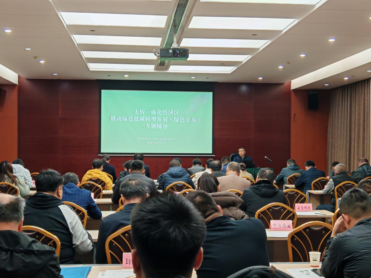 11月15日,太忻一体化经济区推动绿色低碳转型发展(绿色交易)专题辅导在太原成功举行。本次专题辅导旨在学习贯彻党的二十届三中全会和省委十二届八次全会精神,深入落实《中共中央 国务院关于加快经济社会发展全面绿色转型的意见》《国务院办公厅加快构建碳排放双控制度体系工作方案》的有关安排部署,进一步提升经济区企业和部门运用市场化手段推动绿色低碳转型发展能力。省、市、县三级太忻经济一体化发展管理运营部门,中北高新区等8个开发区管委会,区内火电、水泥、供热、铸造、固废处置等30余家企业的有关领导和业务负责人、技术骨干等共计60余人参加。